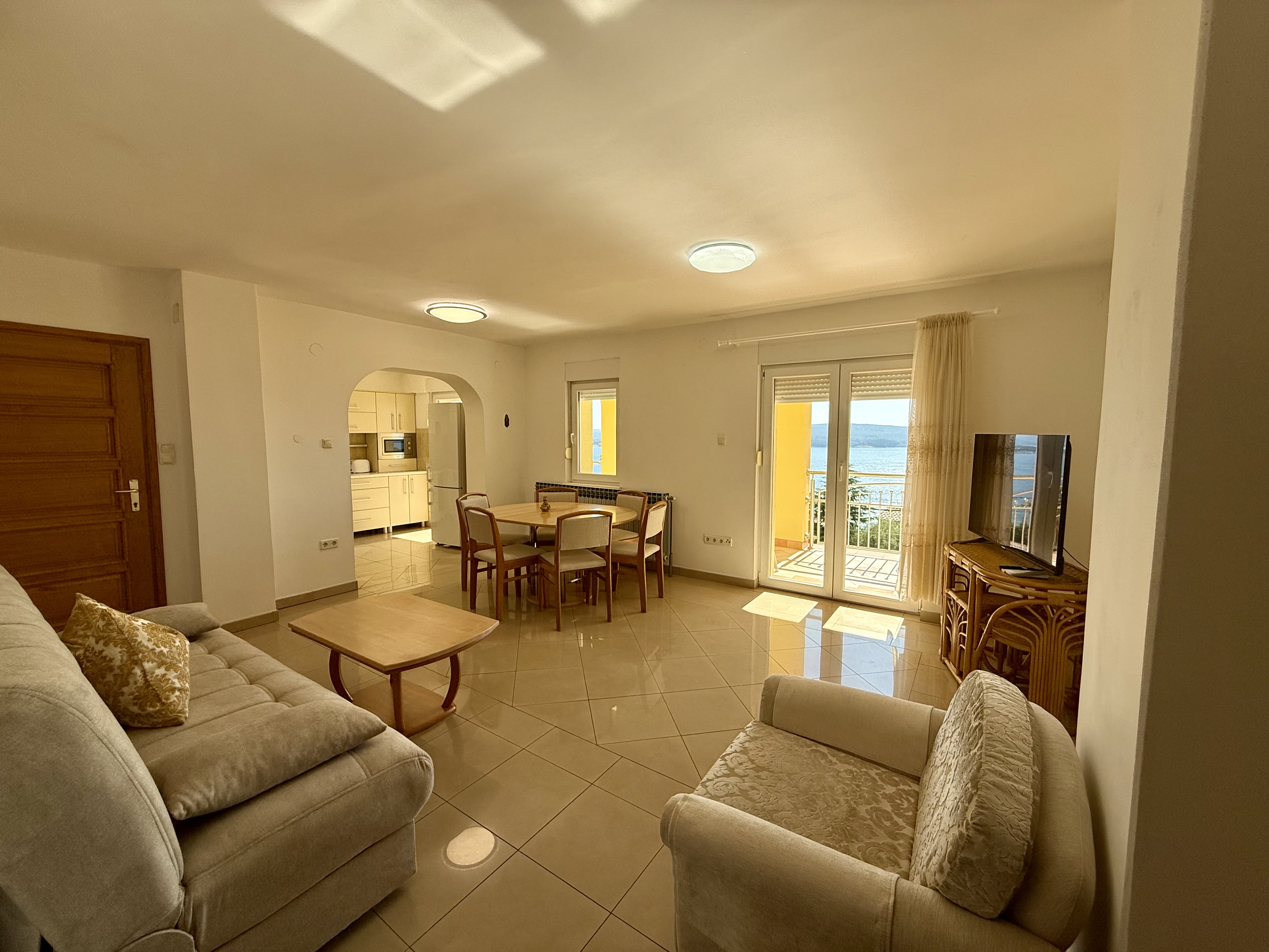 Welcome to the stunning Apartment Vista Bliss, a charming and spacious accommodation nestled in the heart of picturesque Dramalj, Croatia.This delightful apartment is perfect for groups or families of up to seven people, offering an optimal living standard for all seven occupants.