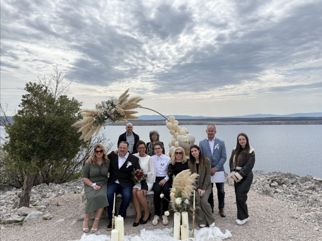This weekend, that story reached its most beautiful chapter. Nicole and Sasha’s wedding took place in a truly unique location – on the cliffs of Kačjak, along the “Path of the Waves,” a scenic viewpoint overlooking the sea. Right there, after 20 years together with their two children, Mia and Noah, they said their heartfelt “I do.”