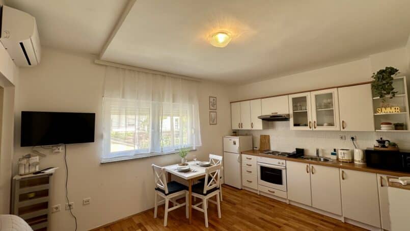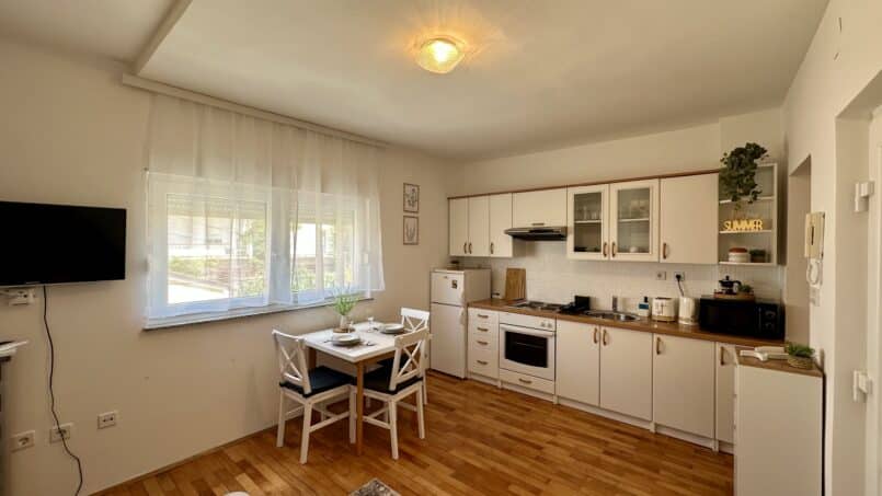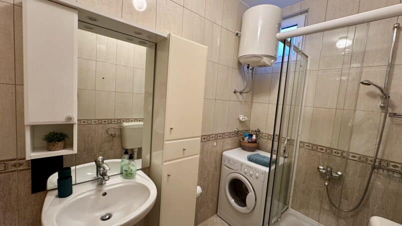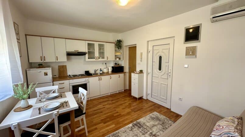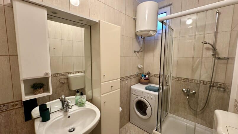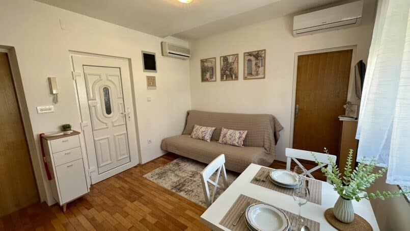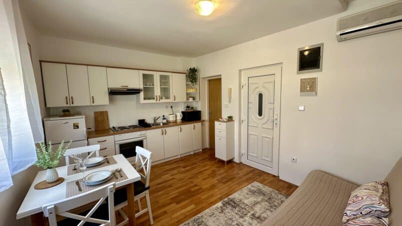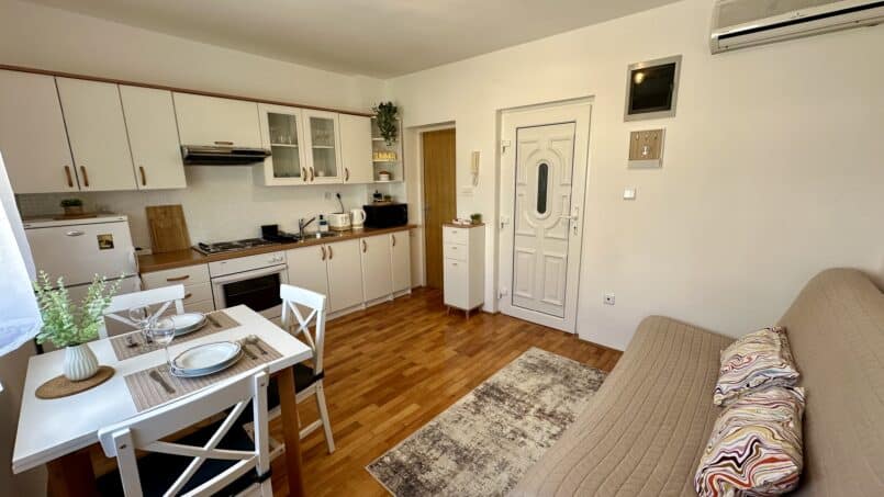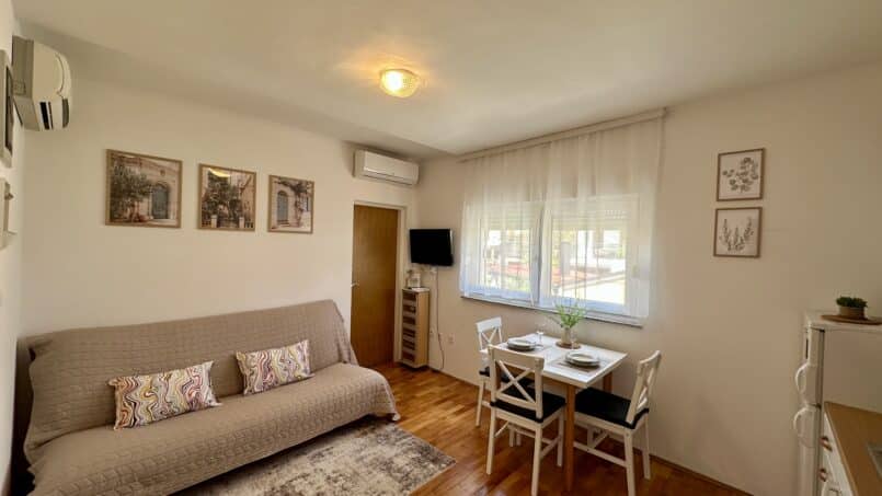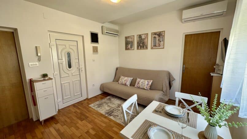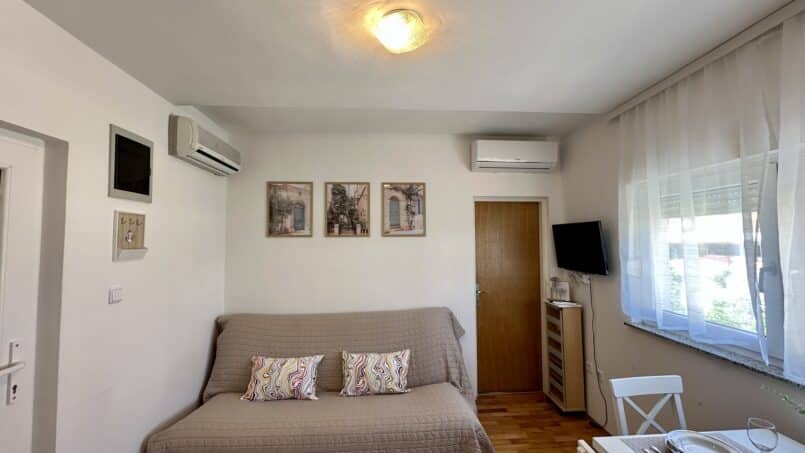 This cozy one bedroom apartment located on the very beachfront of a beautifull seaside town of Crikvenica. This apartment is located on the third floor and is fully equiped and ready to cover all your needs during your vecation. It has a fully equiped kitchen, a bathroom with a washing machine, a living room- kitchen combination with a couch, AC and Tv. Parking is charged for aditional 6โฌ per day and it is on the city parking. Check-in is in a agency on Gajevo ล etaliลกte 48.Dramalj.