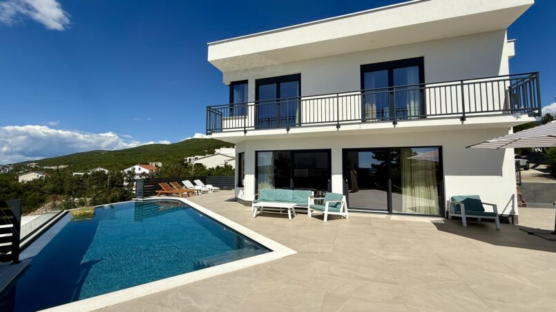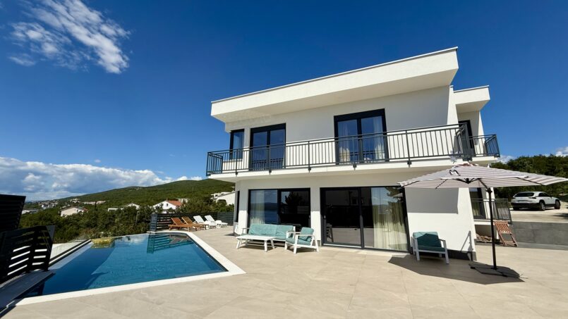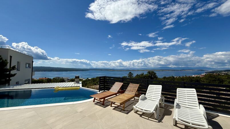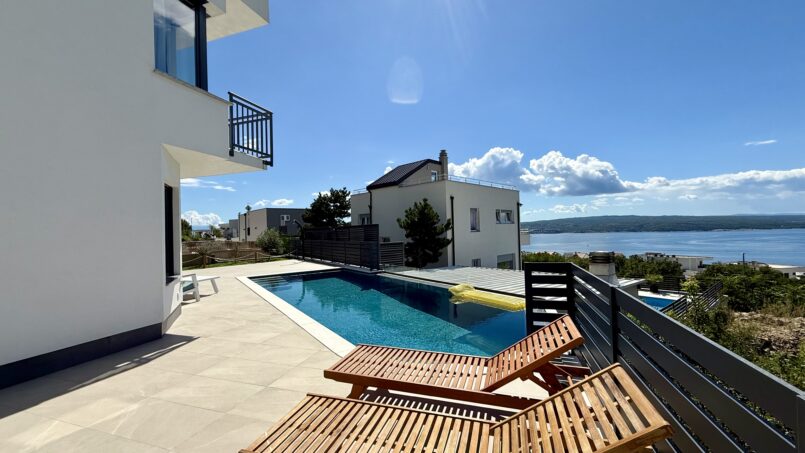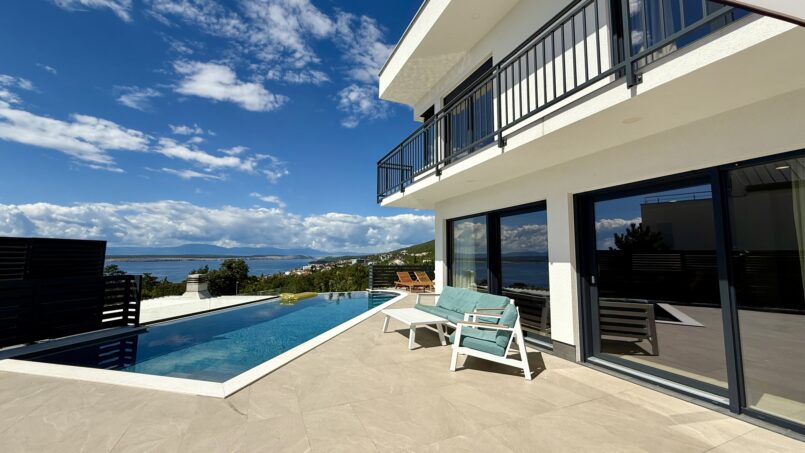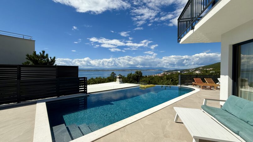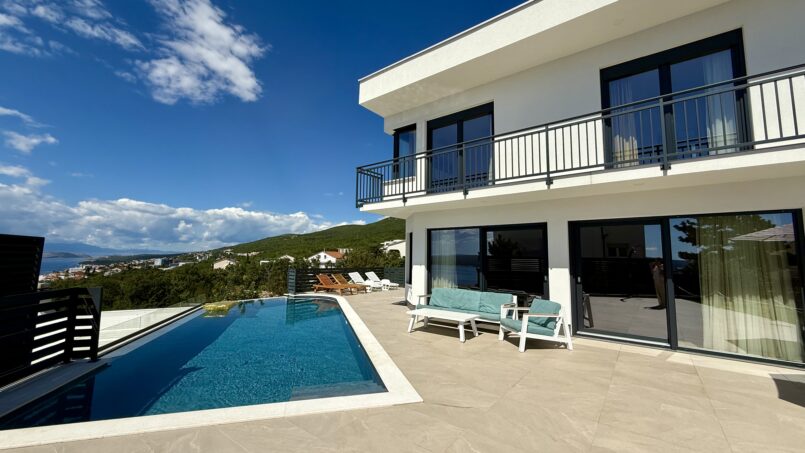 Located in the beautiful sea side town of Crikvenica with a beautiful view of the sea. This modern Villa is equipped with 5 bedrooms, each with its own bathroom, a well-equipped modern kitchen and dining room. One bedroom is located on the ground floor